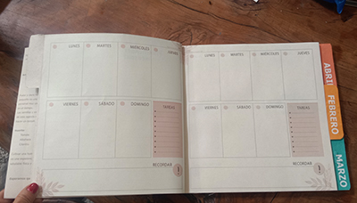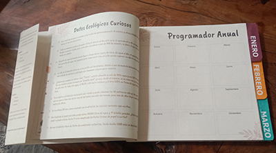 - Estructura Completa: 42 hojas en papel ecológico (84 páginas) con programador anual y mensual.