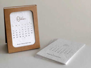 Calendario germinable en el que permanece visible su marca durante todo el año.