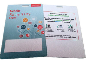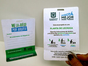 Nuestra escarapela en cartulina ecológica con desprendible germinable elimina el uso de plásticos y papeles de un solo uso. Fabricada en papel semilla rígido de alta calidad, permite que los asistentes siembren su credencial al finalizar el evento. Es la solución perfecta de economía circular que refuerza tu marca, aporta oxígeno y garantiza una recordación positiva y duradera a través de la naturaleza.