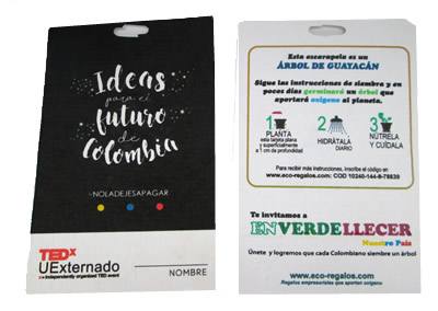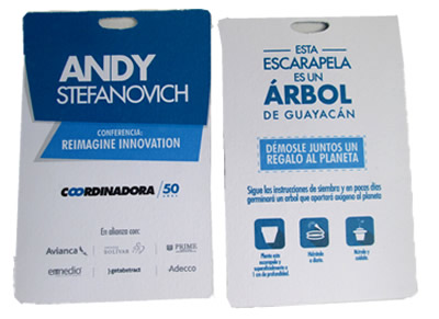 La acreditación que se transforma en vida. Nuestras escarapelas en papel semilla de calibre grueso son la evolución consciente del distintivo convencional. Diseñadas para eliminar el desperdicio de plástico y papel en eventos, estas credenciales garantizan una germinación del 100%. Es una herramienta de economía circular que mejora los indicadores de gestión ambiental del evento, convirtiendo la acreditación de cada asistente en una experiencia vital y un activo de producción de oxígeno.Escarapela con Desprendible Germinable