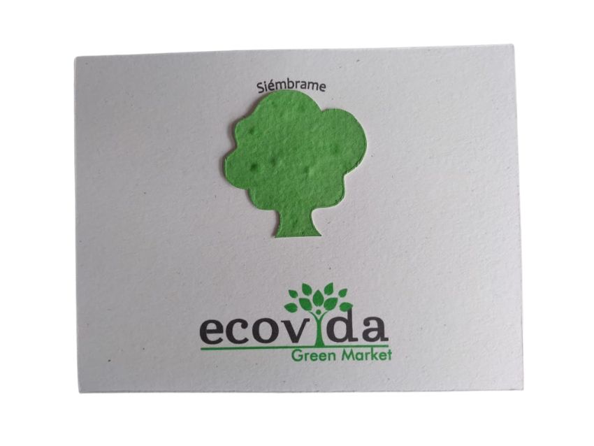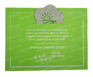 Elaborado en papel de caña de azúcar, incluye un logo semilla que invita a sembrar, cuidar y cosechar. Es la herramienta perfecta de cero residuo para elevar tus indicadores SGA y generar una conexión vital con tus clientes.