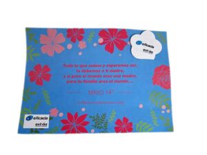 - Cuerpo del volante: Papel de caña de azúcar personalizado con tu información.