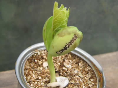 Planta que nace con un mensaje escrito en su primer retoño.