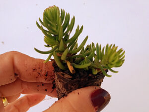 - Suculenta miniatura viva: Con raíz desarrollada, lista para trasplantar.