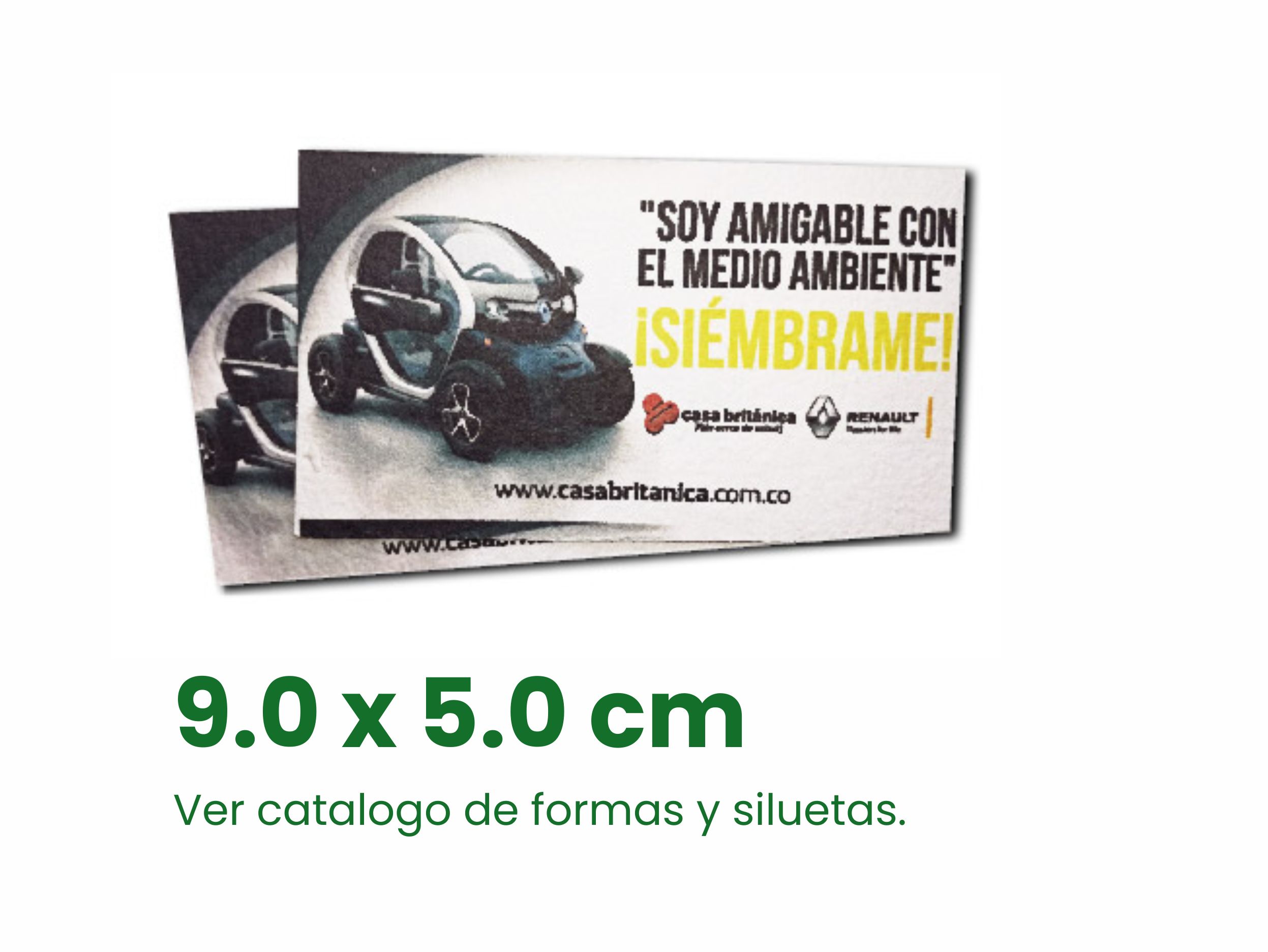 Tarjetas y etiquetas germinables personalizadas en diferentes tamaños.
