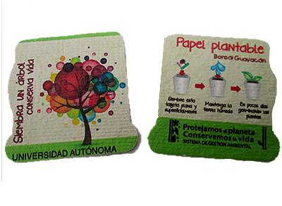 Nuestras tarjetas germinables se adaptan a la identidad de tu marca. Con un tamaño estándar de 5.0 cm x 5.0 cm, puedes elegir la silueta que mejor comunique tu mensaje (corazón, árbol, flor, círculo y más), convirtiéndolas en el inserto ideal para volantes, folletos o invitaciones de alto impacto.