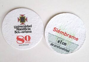 - Impresión Full Color: Personalización total por ambas caras con tintas amigables, reservando el espacio posterior para la guía de siembra.