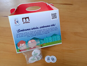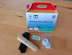 Kit infantil de siembra ideal para regalo corporativo que contiene 20 bolsas germinadoras con una bolsa de sustrato y 20 monedas semilla para colocar una por cada bolsa germinadora.